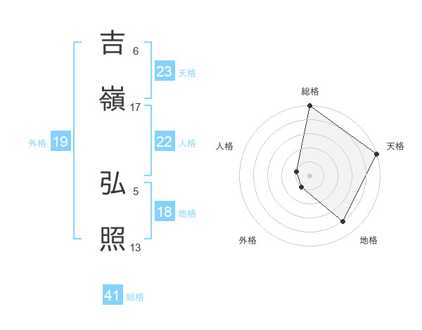 吉嶺 弘照さんの総格は41画の5点!