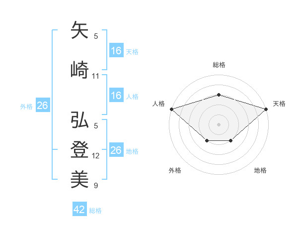 矢崎 弘登美さんの人格は16画の5点!