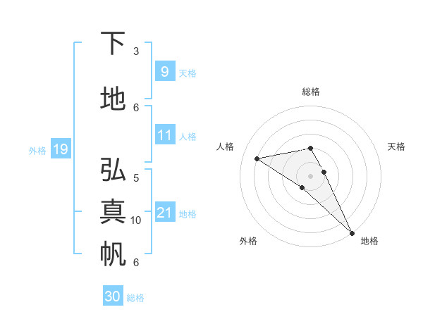 下地 弘真帆さんを姓名の画数から五運を鑑定