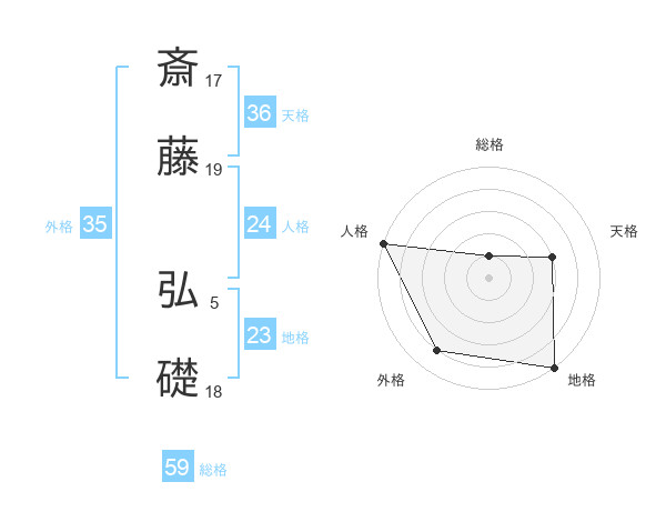 斎藤 弘礎さんを姓名の画数から五運を鑑定