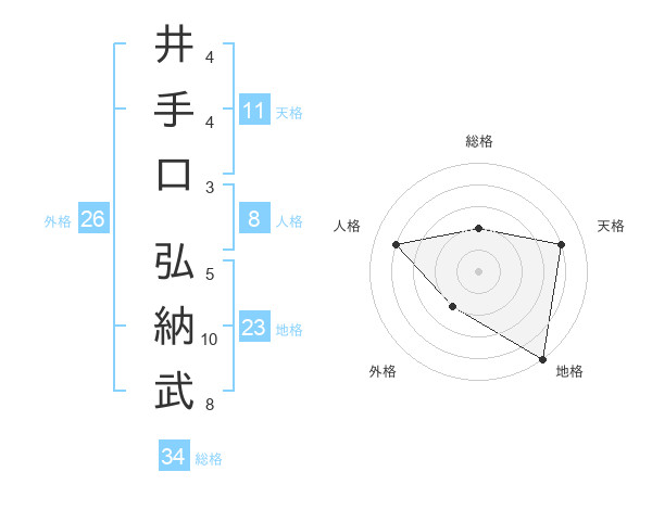 井手口 弘納武さんを姓名の画数から五運を鑑定