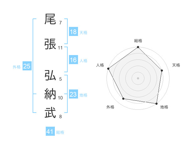 尾張 弘納武さんを姓名の画数から五運を鑑定