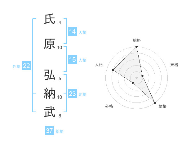 氏原 弘納武さんの総格は37画の5点!