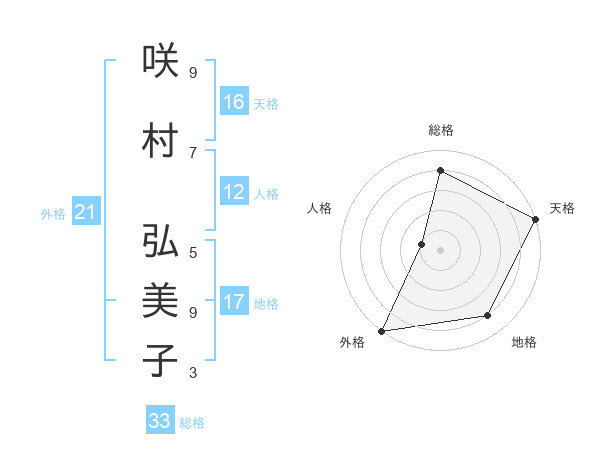 咲村 弘美子さんの天格は16画の5点!