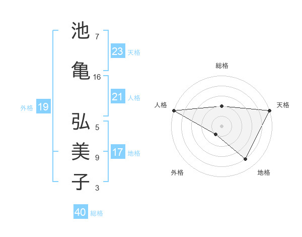 池亀 弘美子さんの天格は23画の5点!
