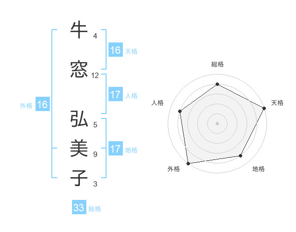 牛窓 弘美子さんを姓名の画数から五運を鑑定
