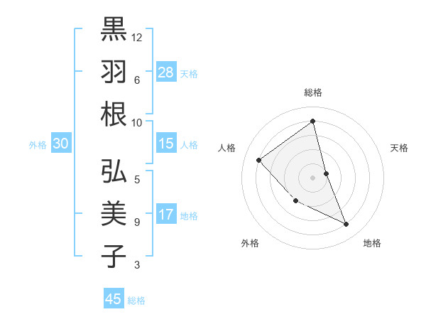 黒羽根 弘美子さんを姓名の画数から五運を鑑定