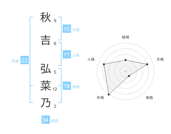 秋吉 弘菜乃さんを姓名の画数から五運を鑑定