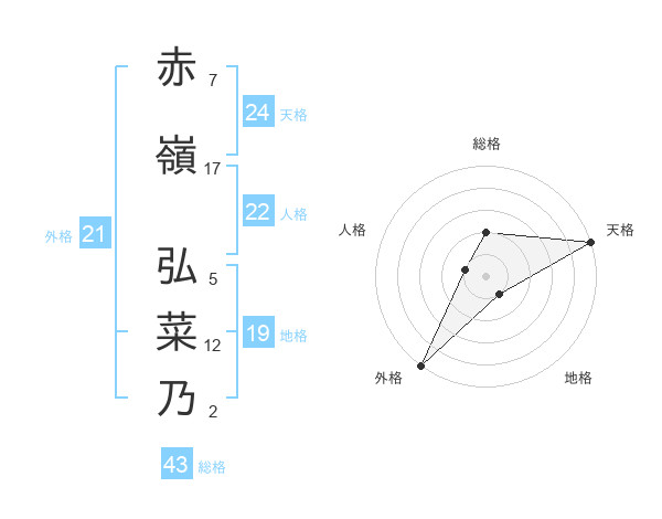 赤嶺 弘菜乃さんの天格は24画の5点!