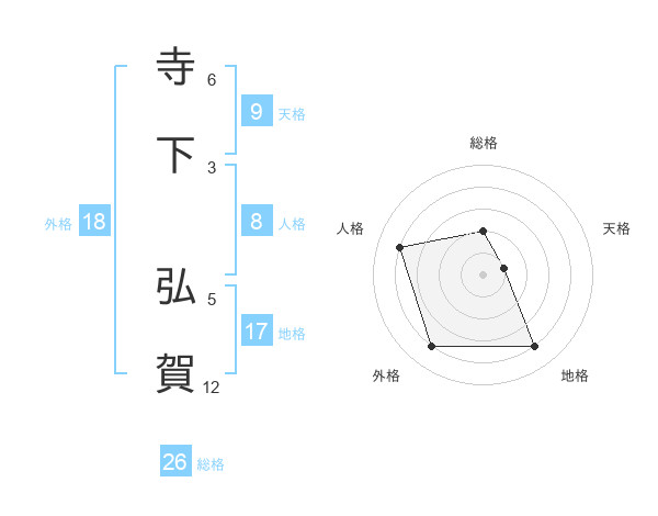 寺下 弘賀さんの総格は26画の2点!
