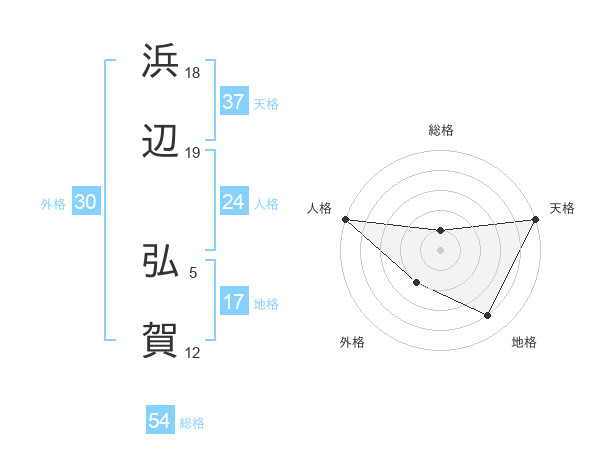 浜辺 弘賀さんの天格は37画の5点!