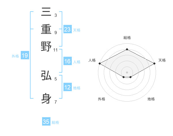 三重野 弘身さんを姓名の画数から五運を鑑定