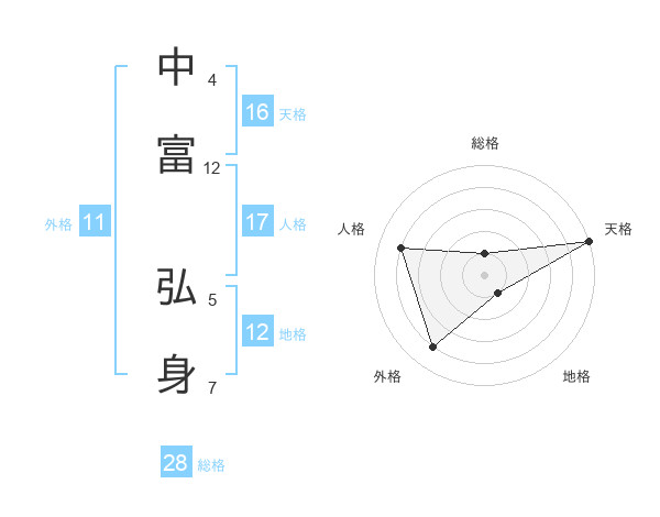 中富 弘身さんの総格は28画の1点!