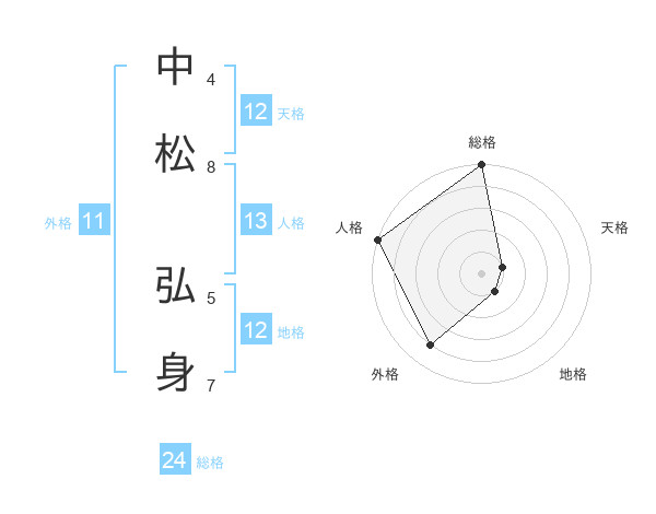中松 弘身さんの天格は12画の1点!