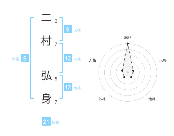 二村 弘身さんの総格は21画の5点!
