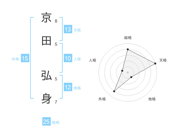 京田 弘身さんの総格は25画の4点!