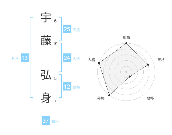 宇藤 弘身さんの総格は37画の5点!