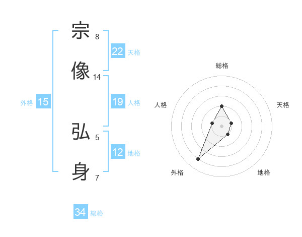 宗像 弘身さんの天格は22画の1点!