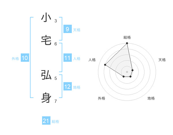 小宅 弘身さんを姓名の画数から五運を鑑定