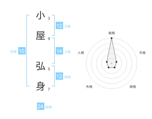 小屋 弘身さんの総格は24画の5点!