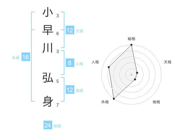 小早川 弘身さんを姓名の画数から五運を鑑定