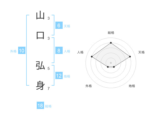 山口 弘身さんの総格は18画の4点!