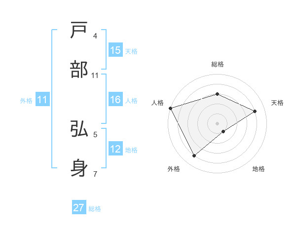 戸部 弘身さんの総格は27画の3点!