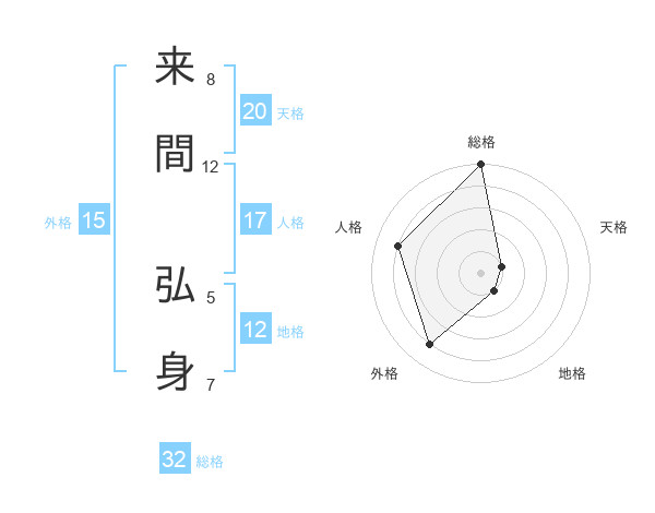 来間 弘身さんの総格は32画の5点!