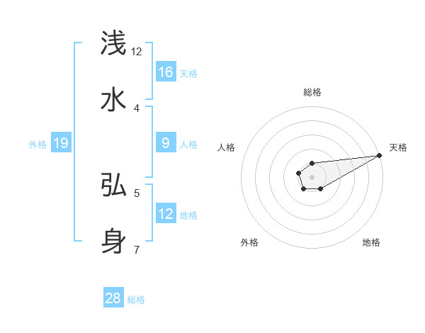 浅水 弘身さんの総格は28画の1点!