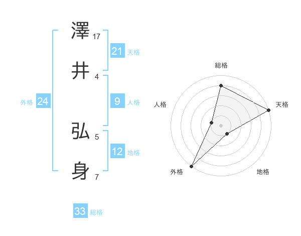澤井 弘身さんを姓名の画数から五運を鑑定