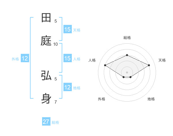 田庭 弘身さんの総格は27画の3点!