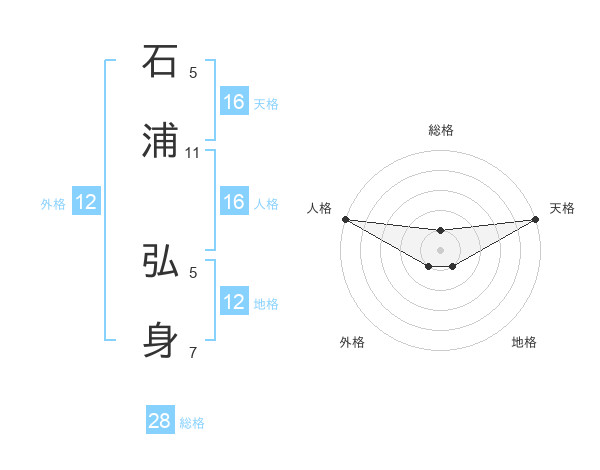 石浦 弘身さんの天格は16画の5点!