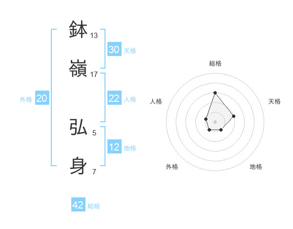 鉢嶺 弘身さんを姓名の画数から五運を鑑定