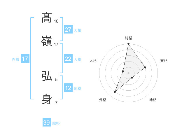 髙嶺 弘身さんの総格は39画の5点!