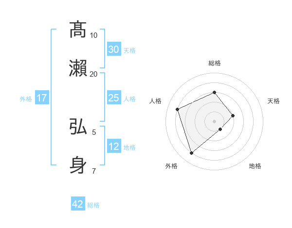 髙瀨 弘身さんの総格は42画の3点!