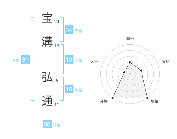 宝溝 弘通さんを姓名の画数から五運を鑑定