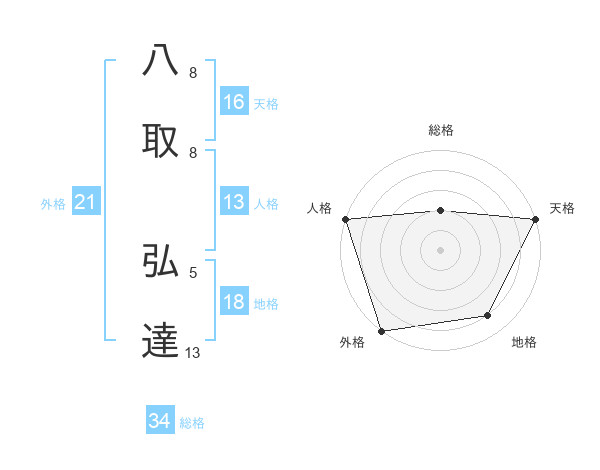 八取 弘達さんの外格は21画の5点!