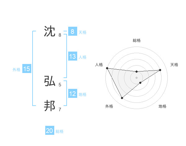 沈 弘邦さんを姓名の画数から五運を鑑定