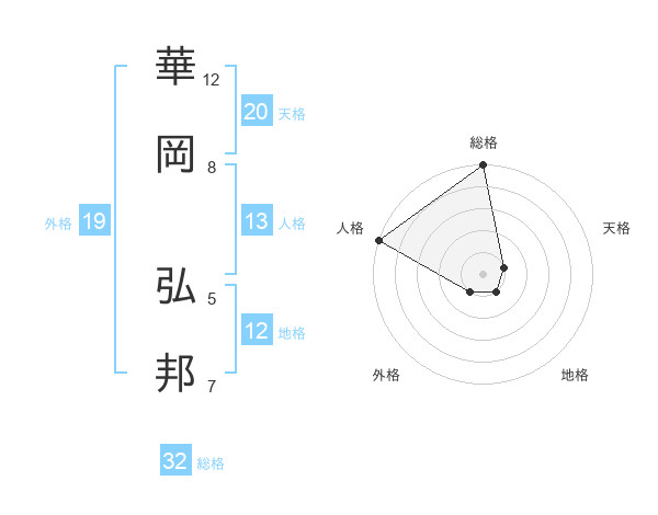 華岡 弘邦さんの総格は32画の5点!