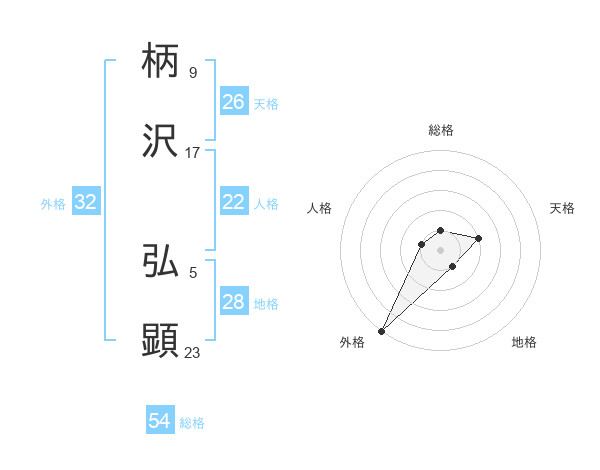 柄沢 弘顕さんの総格は54画の1点!