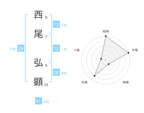 西尾 弘顕さんの総格は41画の5点!