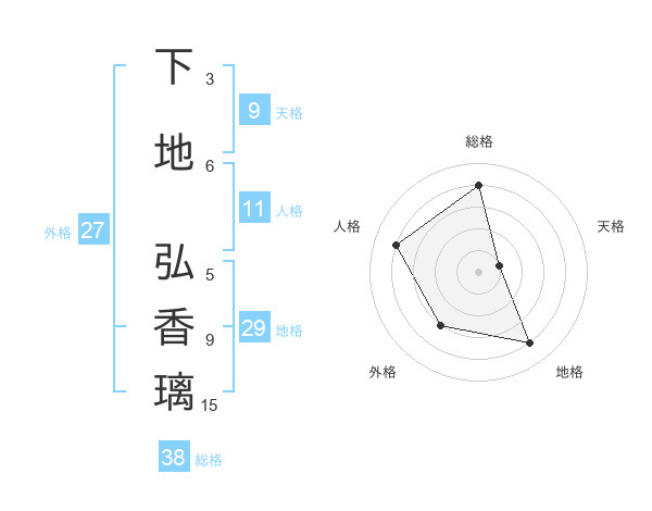 下地 弘香璃さんの総格は38画の4点!