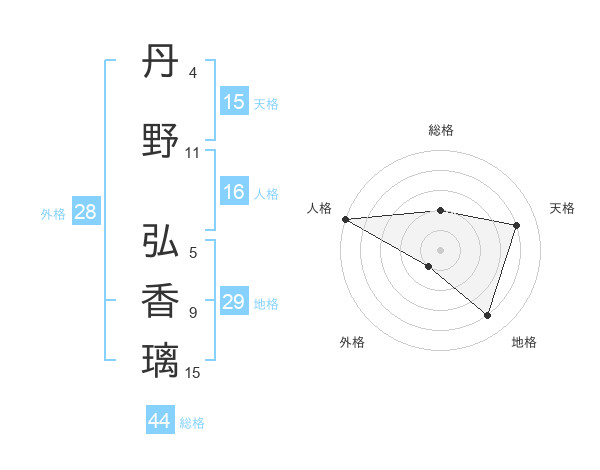 丹野 弘香璃さんを姓名の画数から五運を鑑定