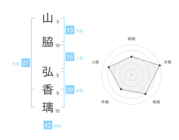 山脇 弘香璃さんを姓名の画数から五運を鑑定
