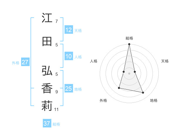 江田 弘香莉さんを姓名の画数から五運を鑑定