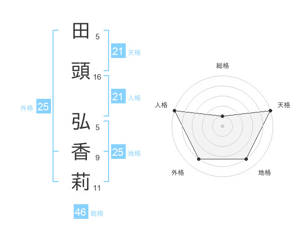 田頭 弘香莉さんを姓名の画数から五運を鑑定