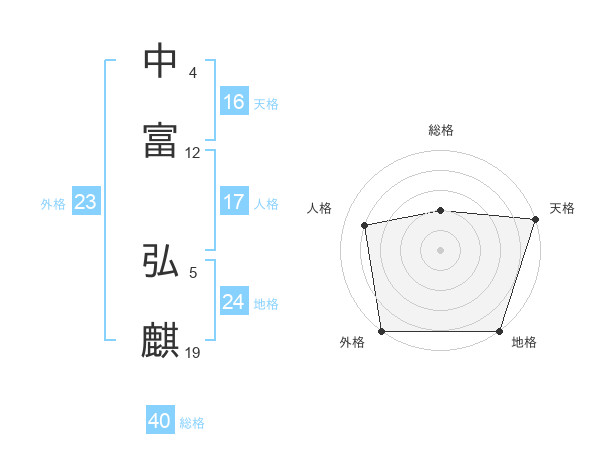 中富 弘麒さんの外格は23画の5点!