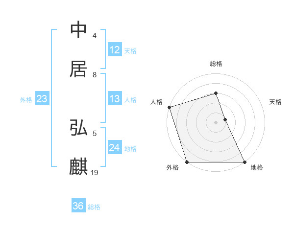 中居 弘麒さんを姓名の画数から五運を鑑定