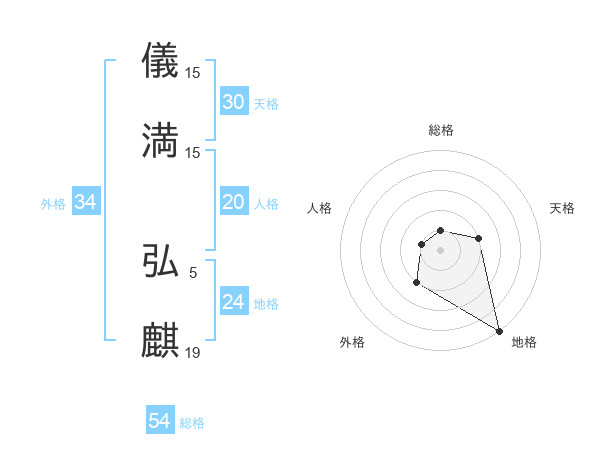 儀満 弘麒さんの天格は30画の2点!