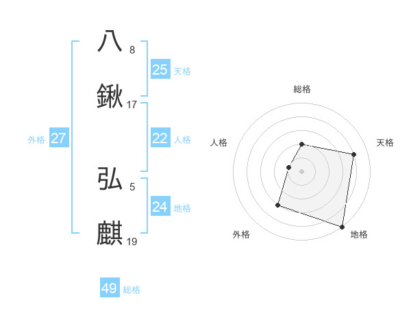 八鍬 弘麒さんの総格は49画の2点!